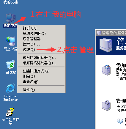 1.右击桌面图标 的 我的电脑 - 点击 管理